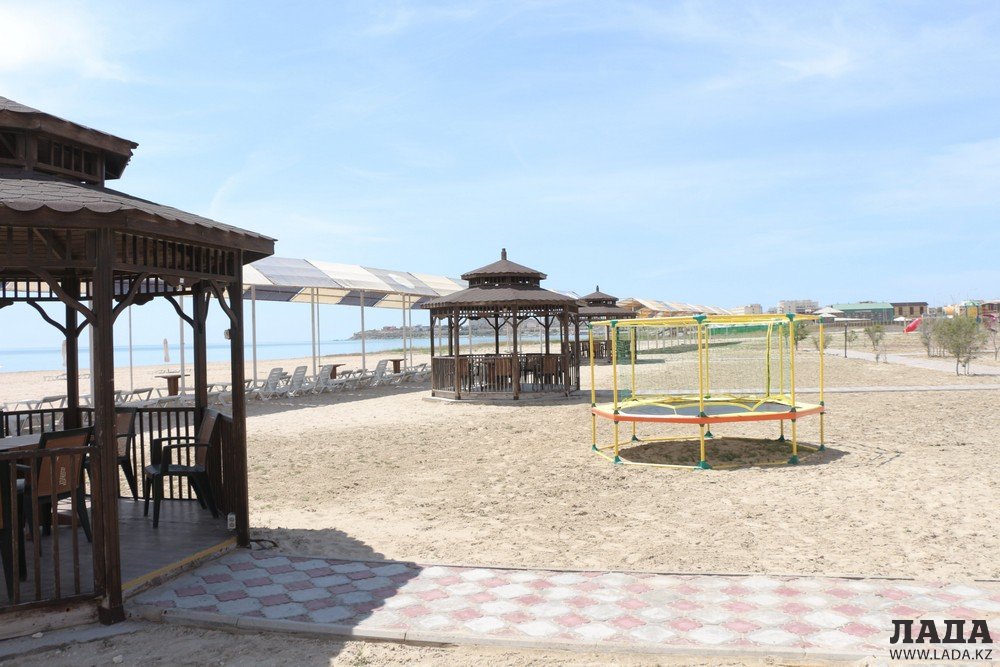 Вход на территорию пляжа бесплатный. Официально пляж открылся в этом году 26 мая. На пляже имеется платная парковка - 500 тенге. Охраняемый пляж работает с 10:00 до полуночи. На пляже имеются детская площадка, волейбольное и футбольное поля, летнее кафе, спасательная вышка и медпункт. По выходным на пляже будут проводиться различные шоу-программы и дискотеки, детей на пляже будет развлекать команда аниматоров. На территорию пляжа завозить с собой продукты питания и напитки запрещено. Имеются кабинки для переодевания, душевые и туалет по 50 тенге. Аренда шезлонга – 500 тенге. Беседки - 2 000 тенге в час. Для отдыхающих предоставляются платные водные аттракционы. На территории пляжа может проводиться торжественная регистрация браков. Пляж находится под охраной, ведется видеонаблюдение. Этим летом на территории пляжа будут проводиться турниры по футболу.