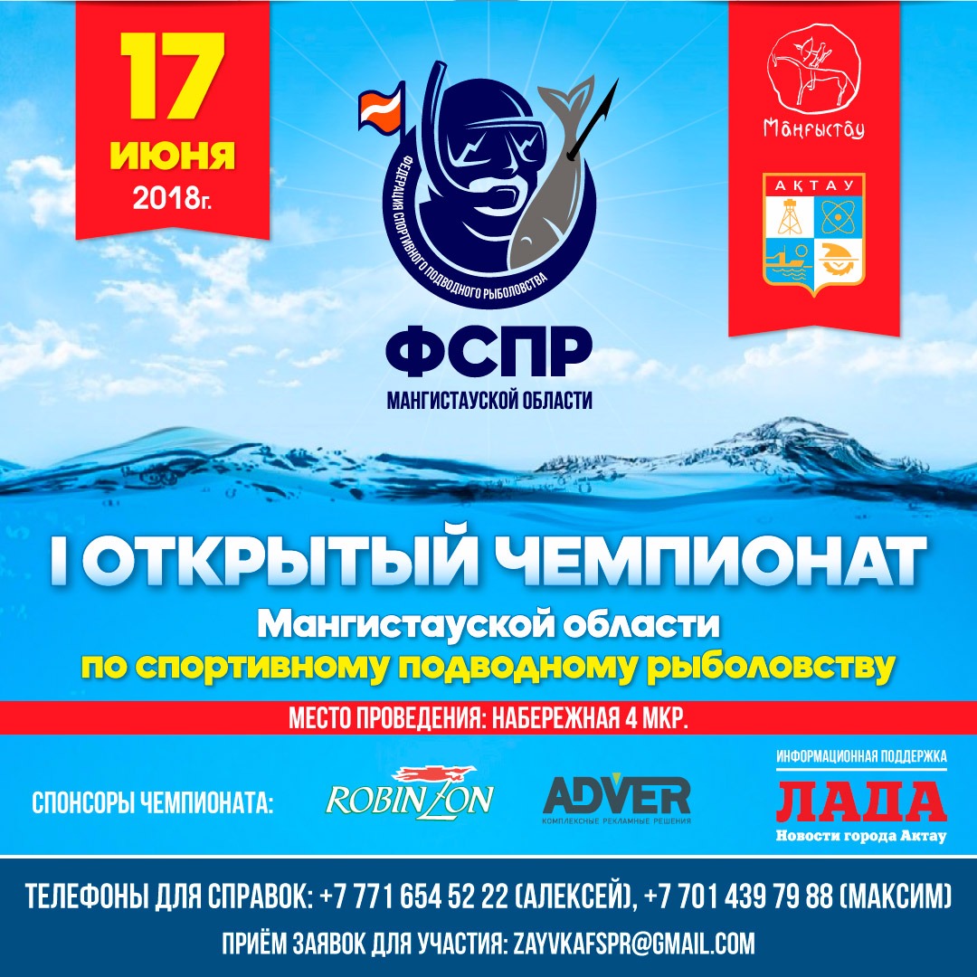 Чемпионат пройдёт 17 июня на побережье 4А микрорайона Актау. Сбор участников в 08:30. Заявки принимаются до 14 июня на почтовый адрес ZAYVKAFSPR@gmail.com. Все интересующие вопросы можно задать по телефонам: 8 771 654 5 222, 8 701 439 79 88.