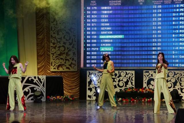 - В салоне импровизированного самолета стюардессы предложили ознакомиться с концертной программой в честь 20-летия Астаны. Здесь были представлены казахские народные песни, которые юные артисты исполнили в сопровождении оркестра народных инструментов под руководством Ж.Нурходжаева. Кроме того, зрителей ожидало выступление «зарубежных» и казахстанских артистов, - рассказала Ольга Хныкина.
