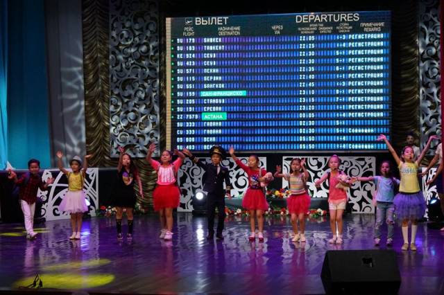 - Руководители творческих коллективов и юные артисты приложили немало усилий, чтобы концерт получился ярким и запоминающимся. Отчетный концерт открыл видеоклип, снятый в аэропорту Актау. Зрители на большом LED-экране увидели панораму города. В конце песни исполнители вышли на сцену. На «посадку» импровизированных туристов приглашали пилот и элегантные стюардессы, исполнившие песню «Адайқыз». Все было по-настоящему: документы, посадочные талоны, информационные табло и объявления, - рассказала Ольга Хныкина, руководитель студии детского творчества.