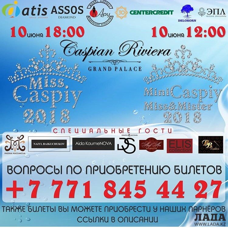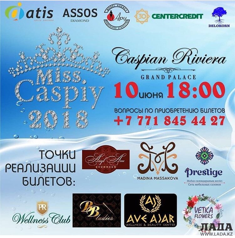 10 июня в 18:00 в гостинице Caspian Rivera состоится социальный конкурс красоты Miss Caspiy-2018. По вопросам приобретения билетов обращайтесь по телефону: +7 7718454427.