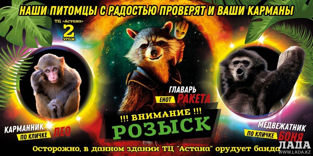 Жителей и гостей Актау приглашают посетить выставку экзотических животных «Живая радуга». В торговом центре «Астана» на втором этаже орудуют разбойники: енот Ракета, обезьянки Боня, Лео и многие другие. С нашими питомцами могут играть и фотографироваться даже маленькие дети. Цена билета: взрослый – 1200 тенге, детям и пенсионерам - 1000 тенге, дети до четырех лет - бесплатно. Фото с ручным питомцем - от 500 тенге. Регламент работы: ежедневно с 12:00 до 21:00. Телефоны для справок: 8 708 252 61 93; 8 776 315 83 30.