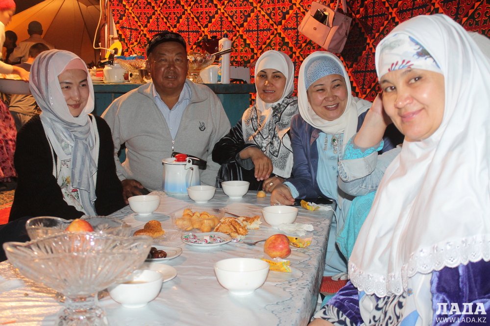 Рядом с мечетью установили восемь юрт. По завершении священной ночи верующие проведут в них утреннюю трапезу - сухур. Это время до первых лучей зари, когда мусульмане могут принимать пищу.