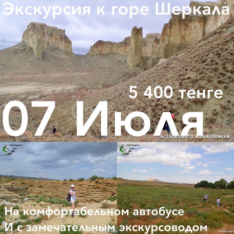 На данной экскурсии вас ждёт: знакомство с овеянной легендами горой Шеркала, что в переводе с туркменского означает «гора-лев», посещение археологических останков древнего городища Кызылкала. За дополнительную плату: обед в ресторане этноаула «Когез». Продолжительность экскурсии -12 часов. Оформить путевку на экскурсию вы можете по адресу: 9 микрорайон, 4 дом, 110 офис. Предварительная запись по телефонам: 43-00-00, 31-56-31, 8 707 98 00 105.