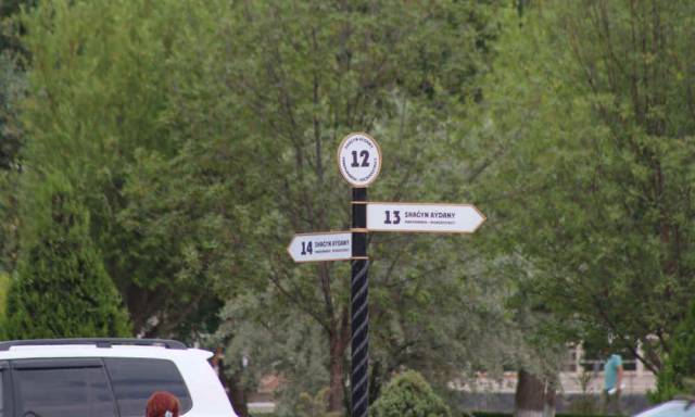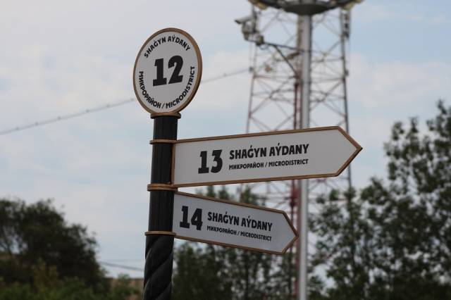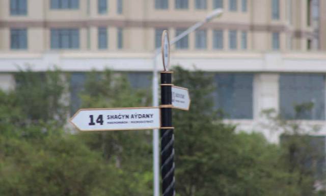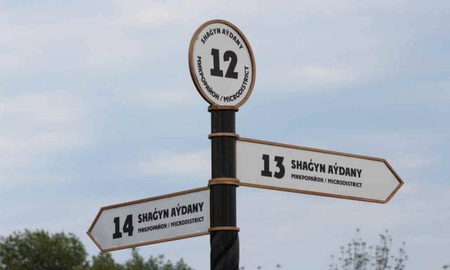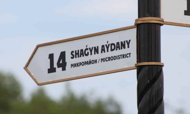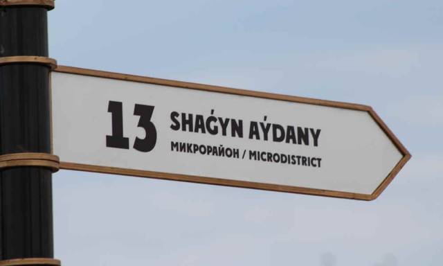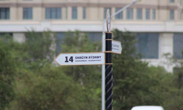 Первые таблички установили у площади государственных церемоний. Надписи сделаны на латинице, русском и английском языках.
