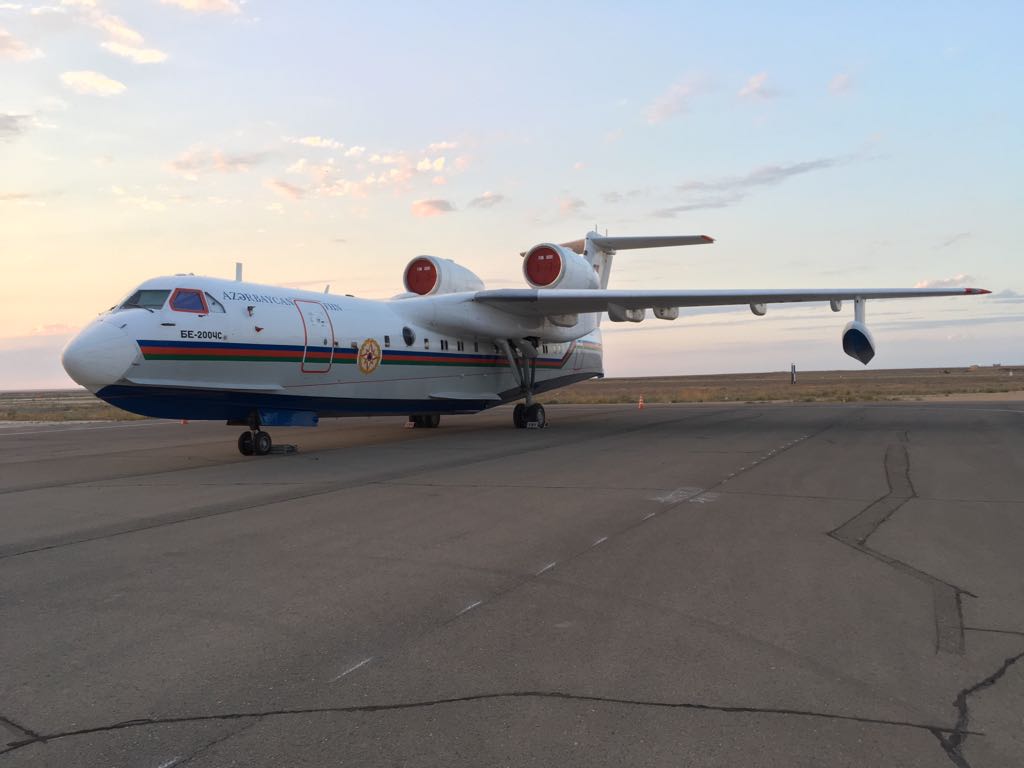 Жители Актау сделали фотографии необычного самолета, который приземлился на взлетно-посадочной полосе международного аэропорта. В ДЧС Мангистау сообщили, что самолет прибыл в Актау на международные учения прикаспийских государств «ТENIZ-2018». Борт Бе-200 находится на службе авиации МЧС Азербайджана.