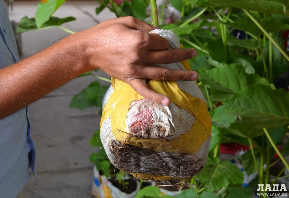 Хуршид Акрамходжаев: Это гибридный сорт «павловния Шан Тонг», славится своими адаптивными качествами. Сорт выращен в нашем питомнике. Можно сказать, высадка саженцев павловнии в Мангистау – настоящий экзамен для растения. Мы проводим исследования, как приживется в подобной земле. Гарантия на его созревание у нас дается на год.