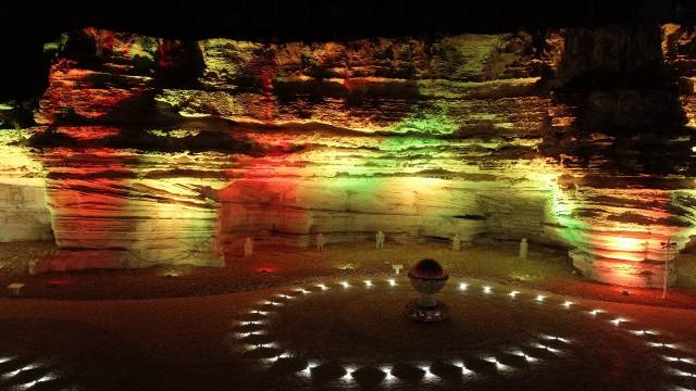 А скалы трогать вообще было ненужно. Будет там теперь не одно ЧП... Но раз уж тронули, то сделайте обычное освещение, что бы глаза отдыхали. Белый свет - самое то.