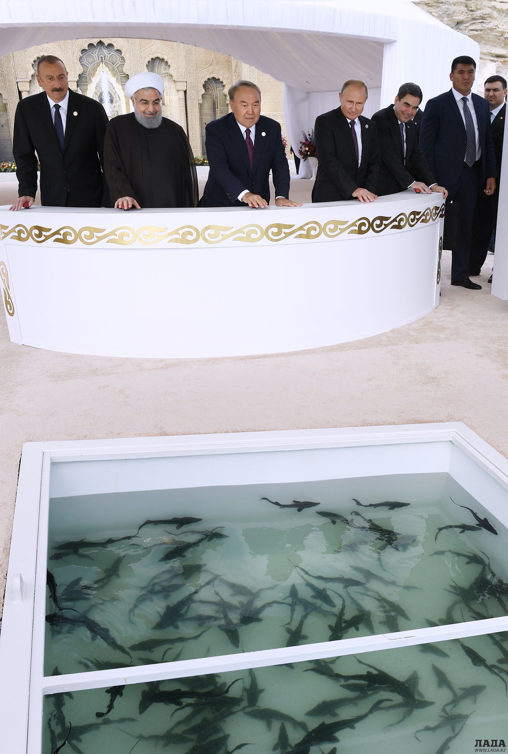 Также главы государств совместно выпустили 500 особей белуги в естественную морскую среду. Как сообщается на сайте Президента, руководители стран также посетили танцевально-театральную постановку по мотивам восточных сказок.