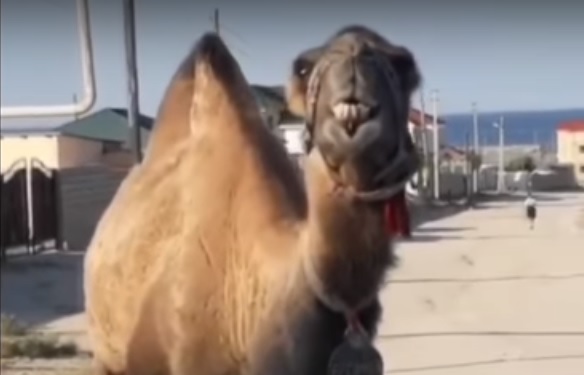 В объектив камеры попал верблюд, который издавал звуки, похожие на пение.