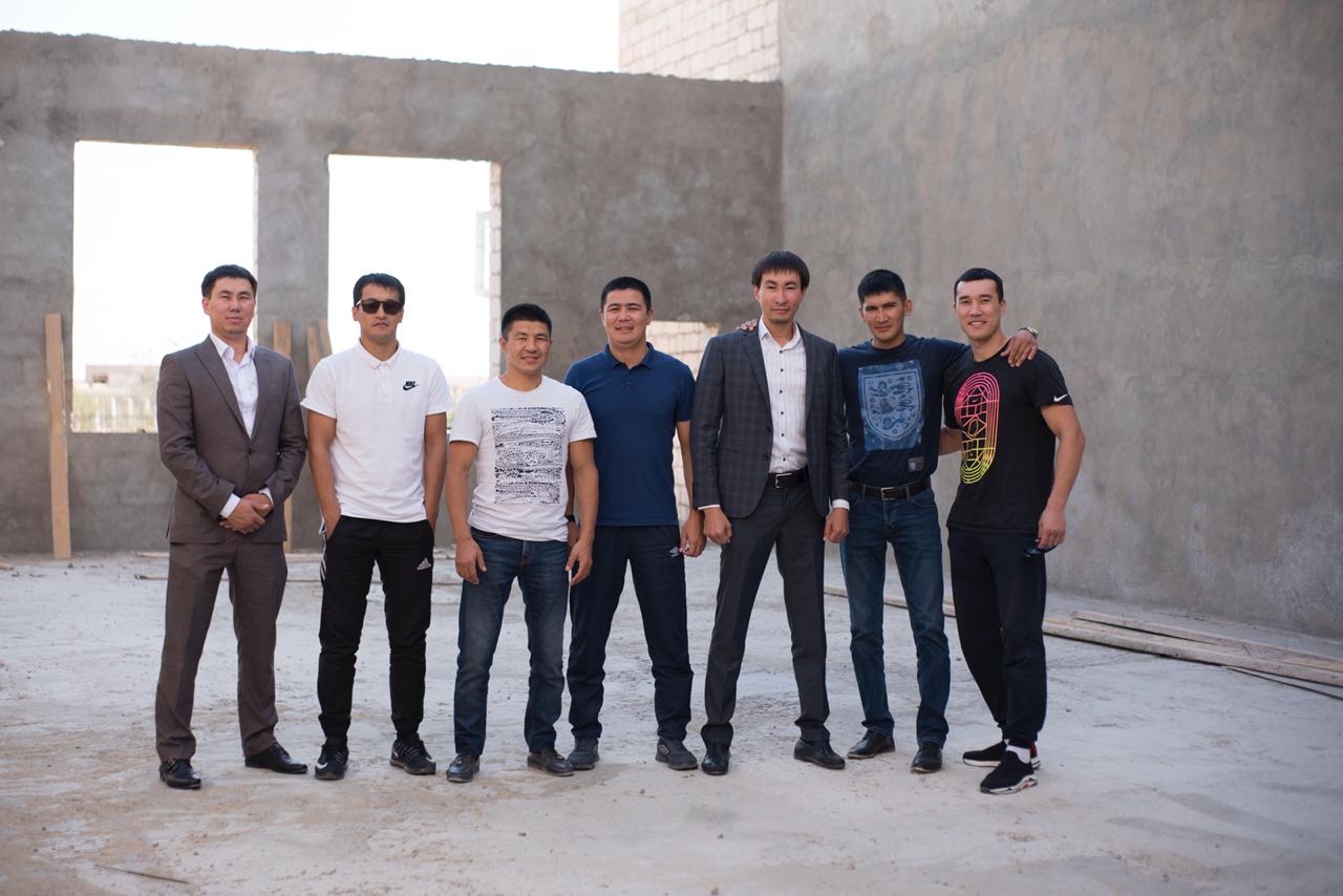 Ознакомиться с ходом строительства спорткомплекса из Актау приехали двукратный олимпийский призер Адильбек Ниязымбетов, мастер спорта международного класса, чемпион Азии, призер мира, участник олимпиады Берик Абдрахманов и директор специализированной детско-юношеской школы Олимпийского резерва по боксу Жандарбек Исанов.