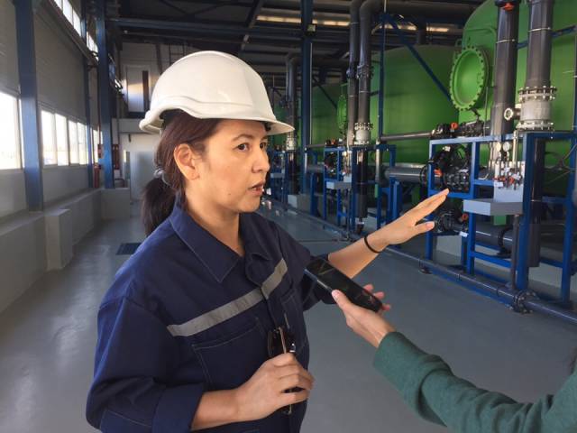 - Вода проходит процесс фильтрации. Это предподготовка, после чего мы очищаем ее от взвешенных веществ, поскольку даже после фильтрации в воде остается их от 20 до 25 микрон (с 100 до 200 микрон взвешенных веществ на входе), в зависимости от мутности воды. После фильтрации вода поступает в цех обессоливания. Цех обессоливания — это сердце завода, где происходит опреснение морской воды, так как в морской воде содержание бора составляет порядка 3,5-4 миллиграмма на литр, и это один из тяжелых веществ, который негативно влияет на здоровье. И уже обессоленный премиат (почти как дистилат) без бора и вредных веществ поступает на деминерализацию, где мы готовим по САНПИНу питьевую воду того качества, которую можно употреблять. Добавляем туда ионы кальция, карбонаты, гидрокарбонаты, саму воду фторируем гипохлоридом, обеззараживаем, и далее она поступает для потребителей. Вся система у нас автоматизирована, стоят микрофильтры, оборудование из Германии, Испании, Китая, США, России. У нас есть своя лаборатория, которая недавно прошла аккредитацию. Таким образом, мы уже можем производить не только анализы своих проб, но и других компаний, которые к нам обращаются, - отметила Жанна Баетова.
