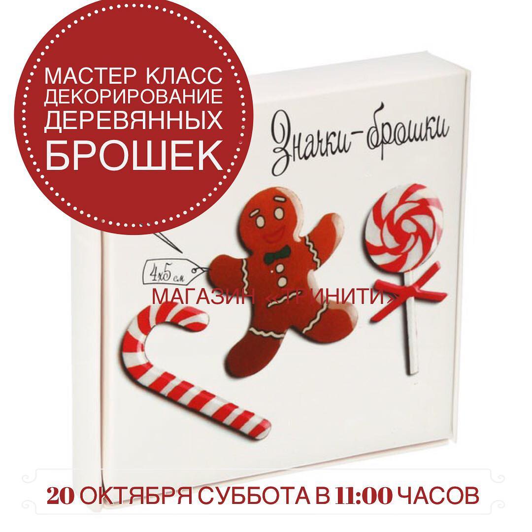 В субботу, 20 октября, в магазине «ТриНити» пройдет мастер-класс для детей по декорированию деревянной броши. Стоимость – 1500 тенге. Место проведения: магазин «ТриНити», 6 микрорайон, 40 дом. Запись по телефонам: 33-42-91, 8 777 16549403.