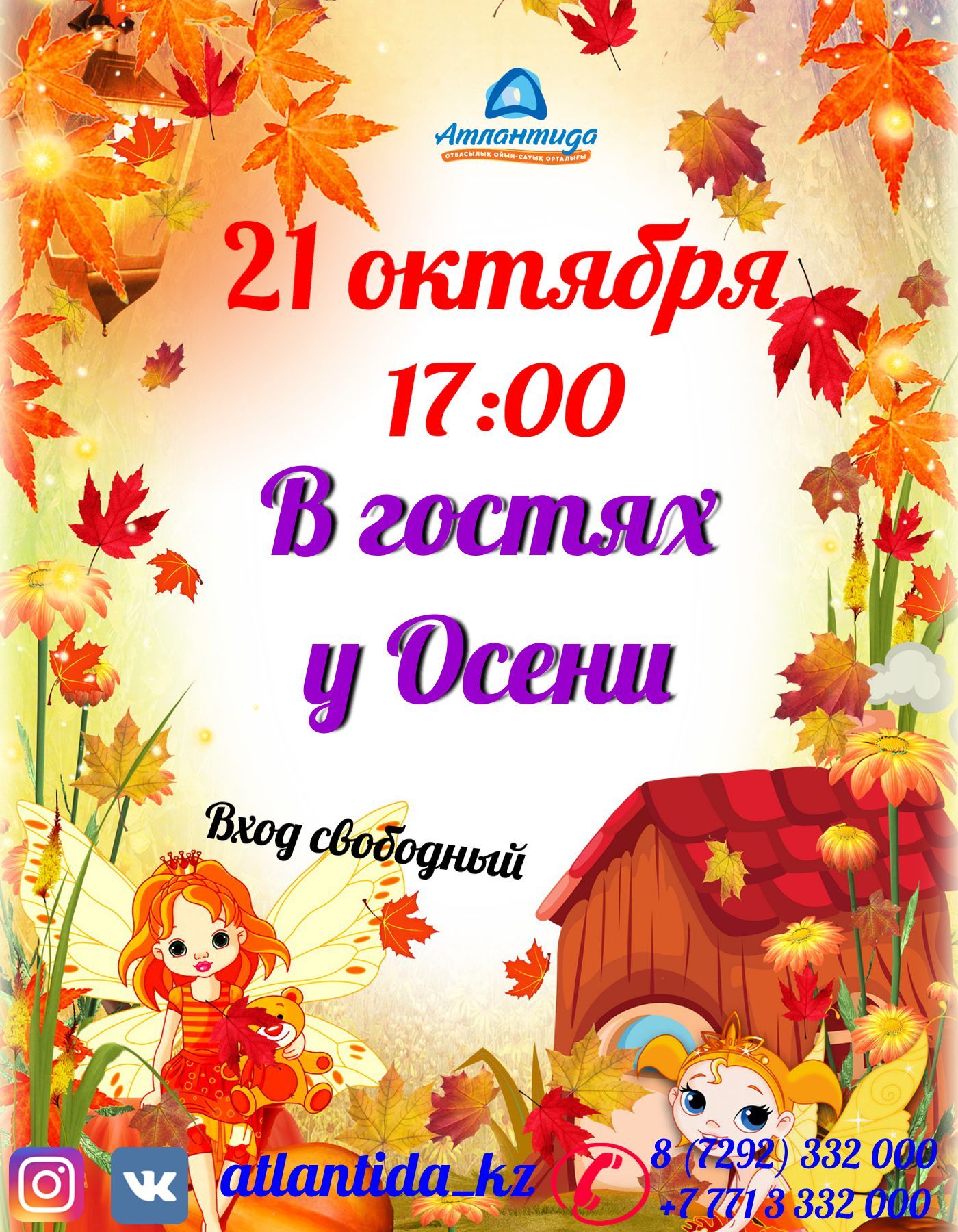 В семейном развлекательном центре «Атлантида» 21 октября пройдет зажигательная шоу-программа с участием веселых аниматоров. Отличное времяпрепровождение для всей семьи. Место проведения: семейный развлекательный центр «Атлантида», расположенный на четвертом этаже универсального торгового центра «Заман». Вход бесплатный.