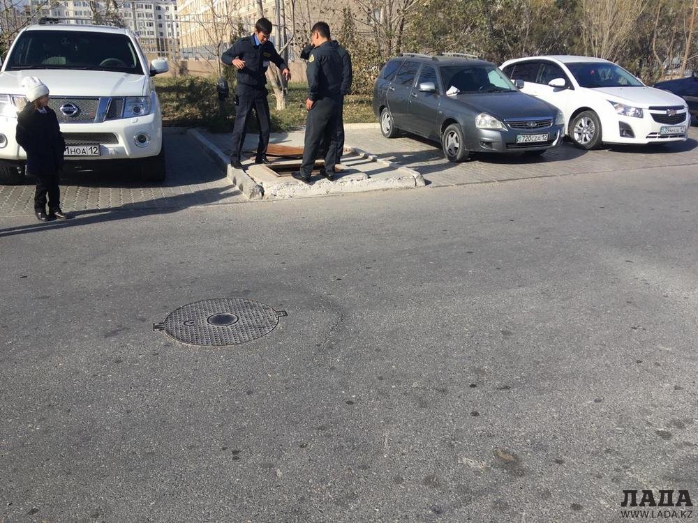 По словам очевидцев, ребенок наступил на металлическую поверхность, прикрывающую люк. В этот момент крышка перевернулась и девочку чудом успели схватить, не дав ей упасть вниз.