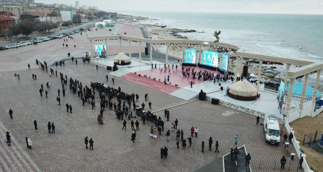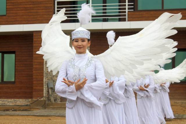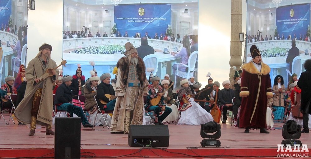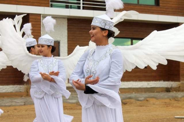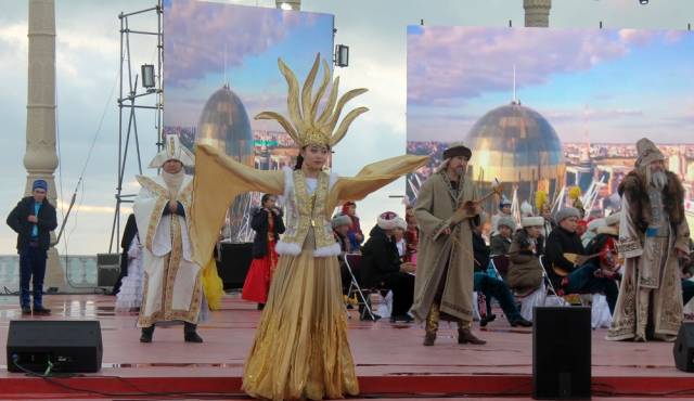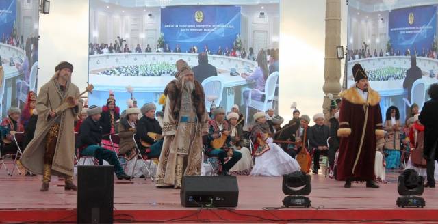 После на сцене амфитеатра с участием артистов местного театра было организовано театрализованное шествие «Ұлы Мұра ұрпаққа аманат!».