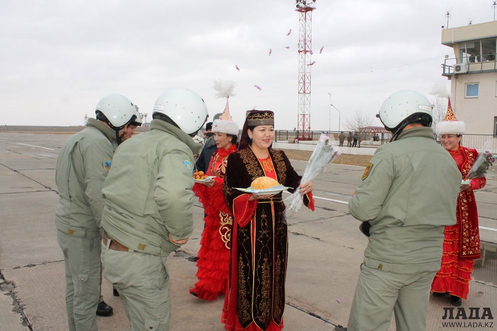 Прибывших летчиков встретил весь личный состав и командир авиационной части №30153 Актау, полковник Жанибек Жумашев.