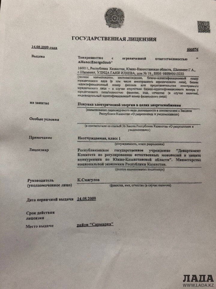 В госреестре данный номер лицензии оформлен на другое ТОО и по другому адресу. ТОО Альянс......и далее, замучилась их название писать-это другая организация: название, директор и адрес...сдаётся мне тут фальсификация!
