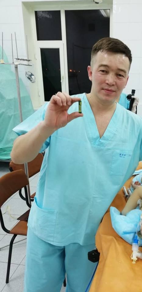 - Батарейку из желудка малышки извлекли через специальный аппарат, без хирургического вмешательства. Заведующий отделением анестезиологии и реанимации Казбек Келманов вместе с врачом анестезиологом-реаниматологом Бакытжаном Сарсенбайулы в течение часа извлекали из желудка ребенка инородный предмет. В настоящее время состояние ребенка хорошее, отпущена домой. Благодаря усилиям врачей удалось избежать неминуемого. В целом родители должны понимать, насколько опасны для ребенка мелкие предметы и игрушки. Родители должны следить за тем, чтобы их дети не клали в рот всякие мелкие предметы. Особенно следует избегать таких острых и опасных предметов, как магнит, гвоздь, батарейки, монеты, - сказал Азамат Сарсенбаев.