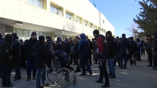 У Жанаозенского городского акимата 20 февраля 2019 года собрались более ста безработных. Люди продолжают требовать, чтобы им нашли работу с заработной платой более 150 тысяч тенге.