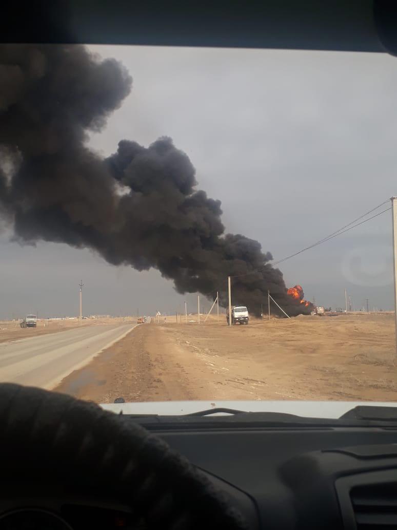 Пожар произошел по дороге к нефтегазодобывающему управлению (НГДУ-1) в Жанаозене.
