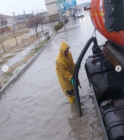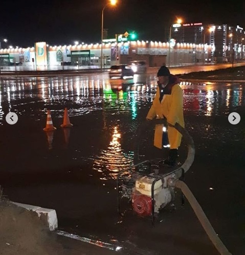 - В связи с резким изменением погодных условий и обильным выпадением осадков работники ТОО «Кала жолдары» с 22:00 часов вышли на ночное дежурство. В первую очередь проводили работы по откачке воды в местах большого скопления: ЖК «Дукат»,ЖК «Оазис», пересечение гипермаркета «Дина», «Таможня», торговый центр «Олжа», ЖК «Тамшалы», гостиница «Виктория», Центральная мечеть, у «Жёлтого рынка», автомобильная дорога №24. В этих работах задействованы 10 рабочих, один автомобиль бойлер, пять мотопомп, - отметили в акимате Актау.