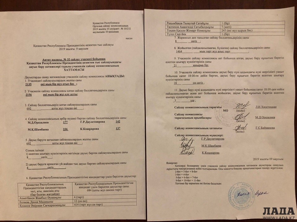 Артём Прокофьев, международный наблюдатель из России, разместил в интернете фото протокола результатов выборов президента Казахстана на одном из избирательных участков в Актау. На нем зафиксировано, что почти 60 процентов голосов набрал лидер оппозиции Амиржан Косанов.