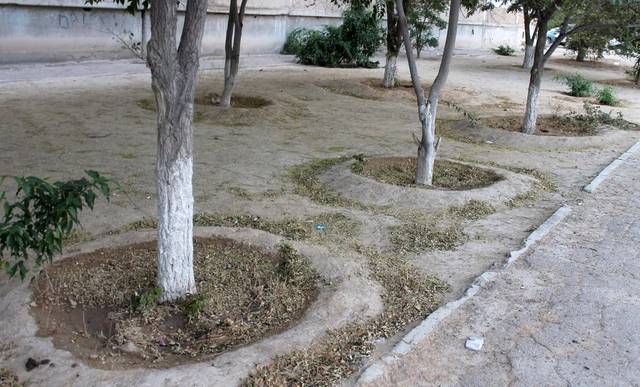 проверили корреспонденты Lada.kz, которые провели обход 5 микрорайона. Была полита лишь малая часть деревьев и кустарников, уборка сухостоя не начиналась. Причину отсутствия полива в ТОО «РЭП»