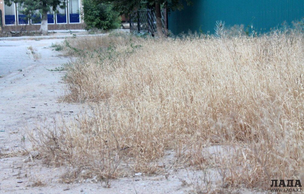 В микрорайоне много сухой травы.