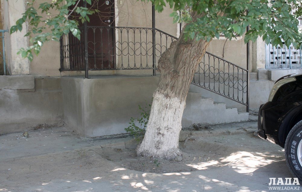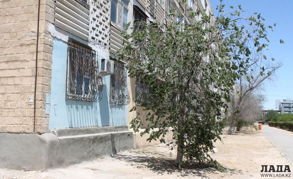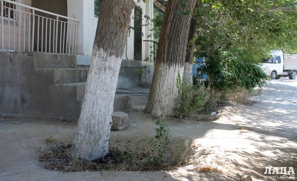 Корреспондентам Lada.kz жильцы дома №36 в 5 микрорайоне рассказали, что полив возле их дома не производился с начала лета.