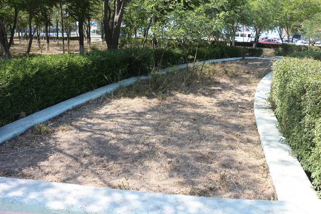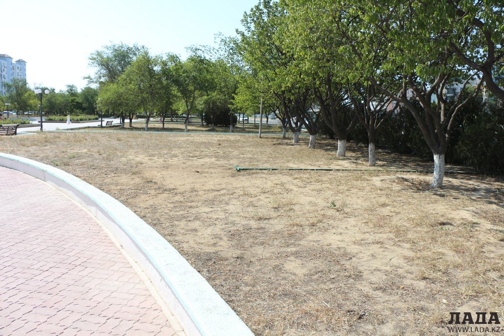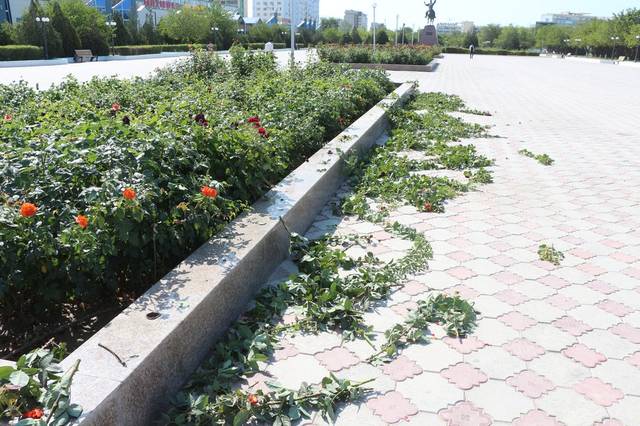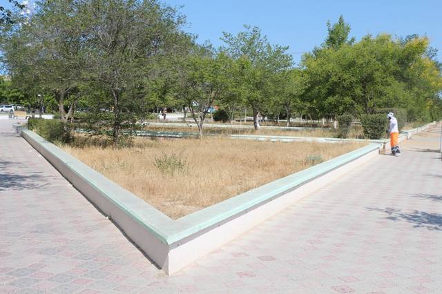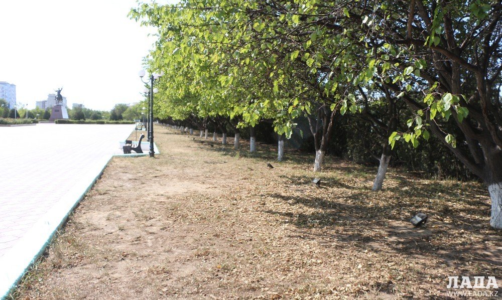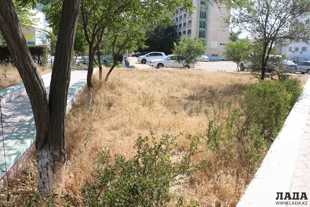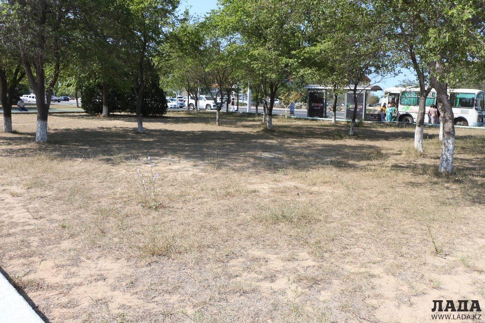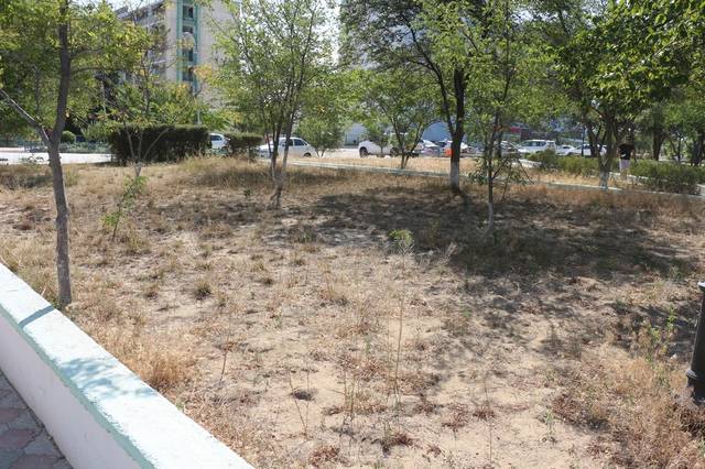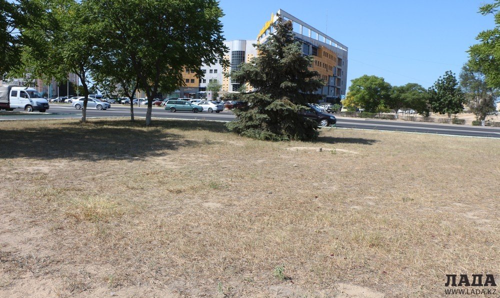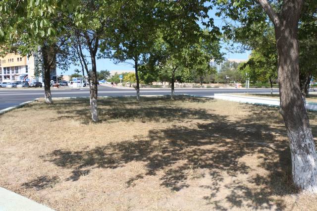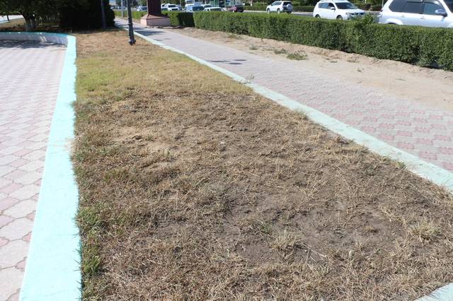 На территории площади отсутствует зеленая трава, которая была в прошлом году.