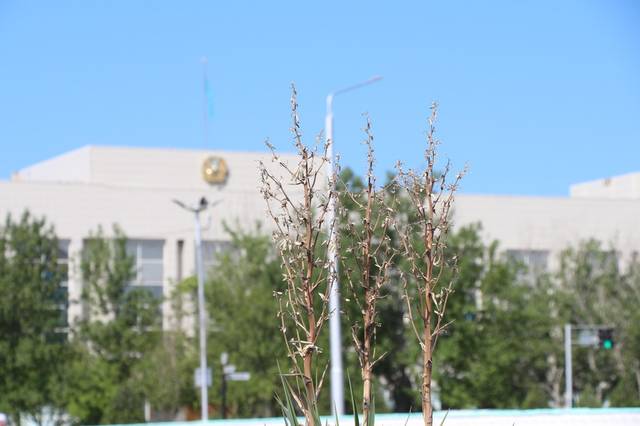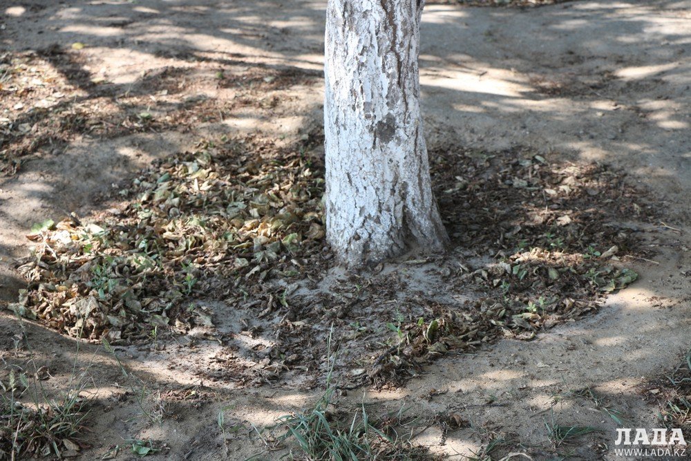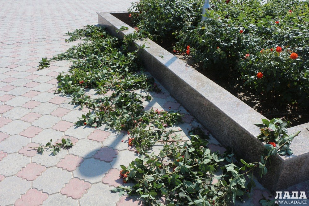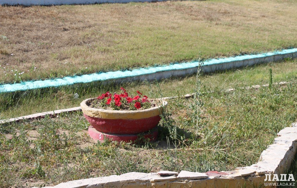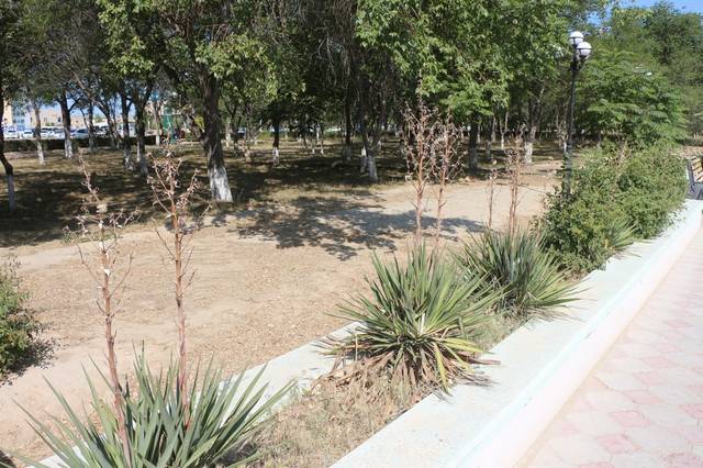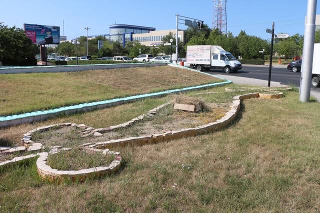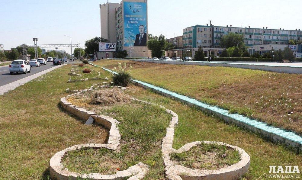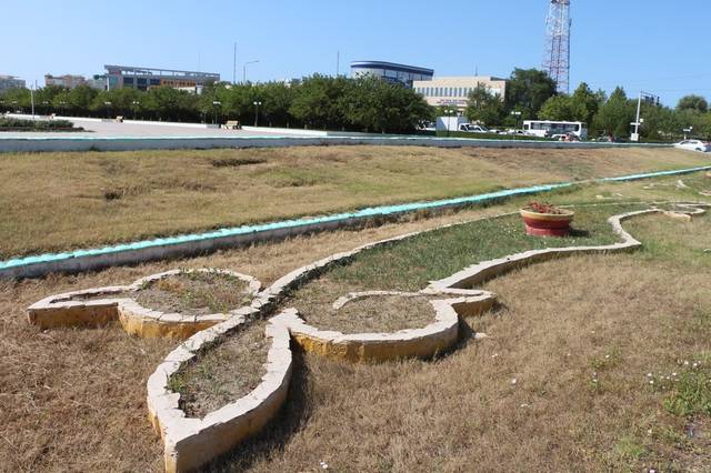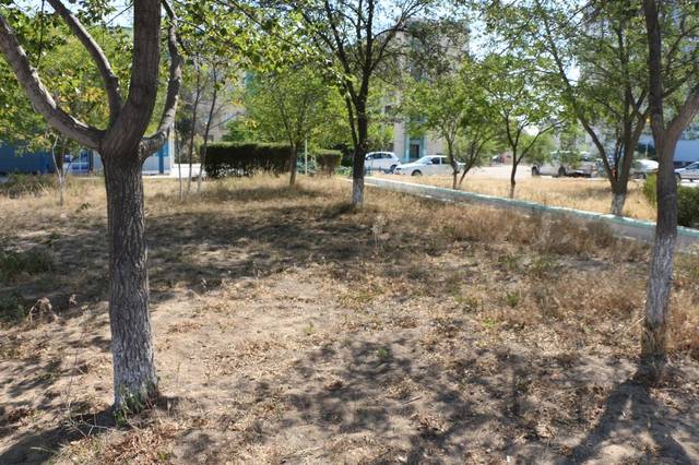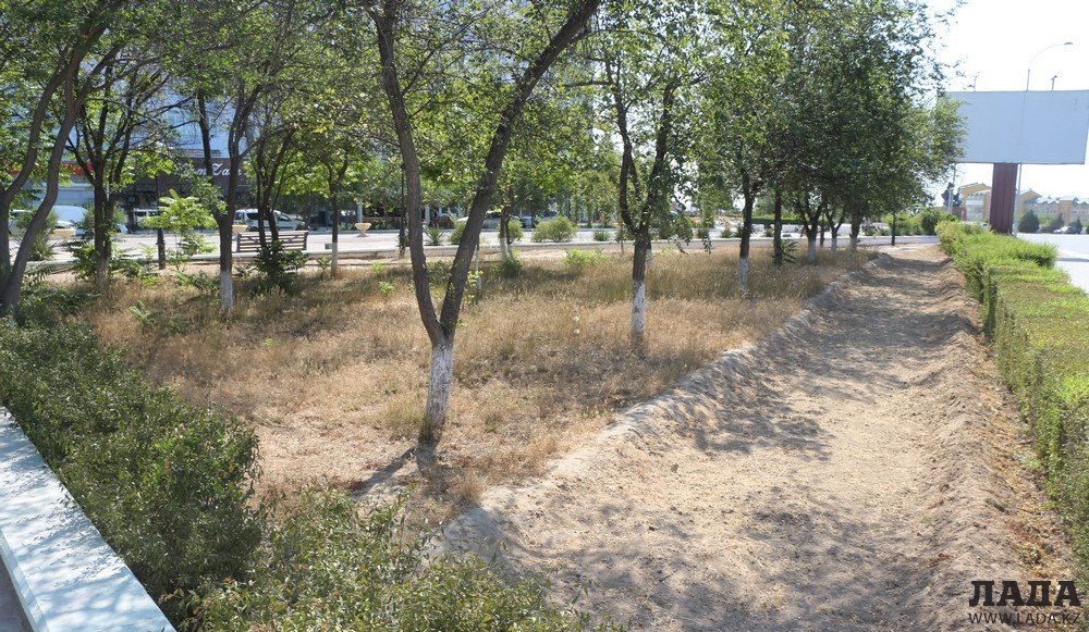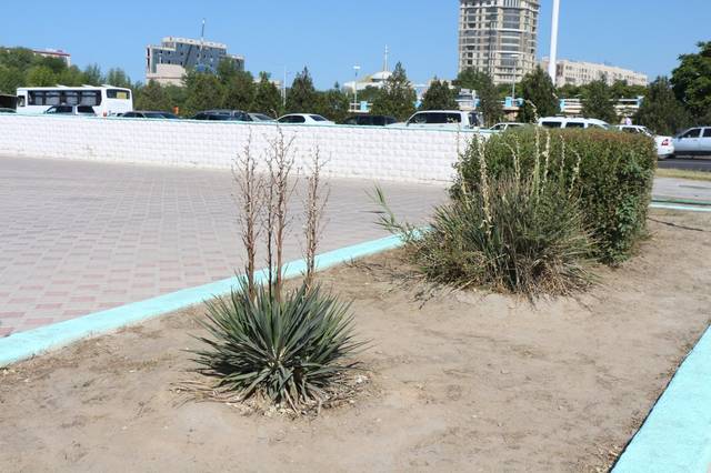 На территории площади отсутствует зеленая трава, которая была в прошлом году.