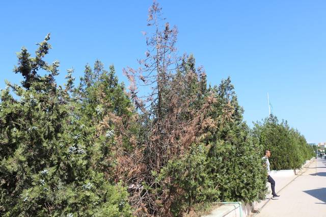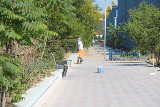 Вчера впервые появились признаки какой-то деятельности в виде стука в убитую каменную землю. Вроде попытки окопать или убрать засохшую траву. Сегодня лежат кучками срезанные засохшие погибшие ветки деревьев и кустов.
