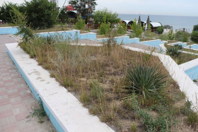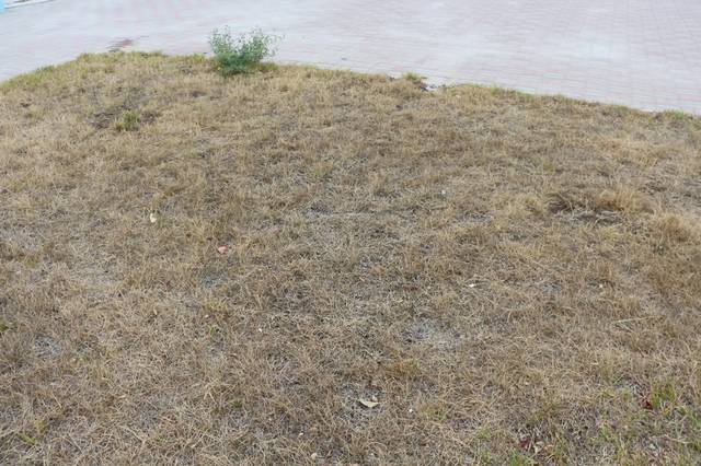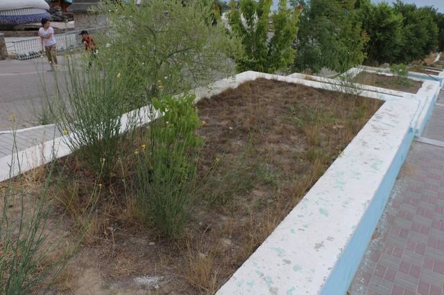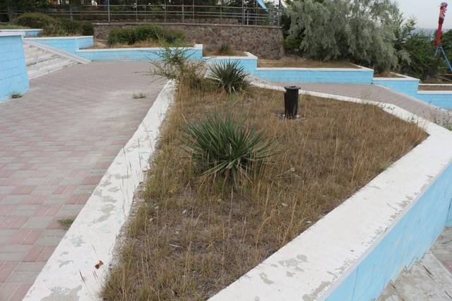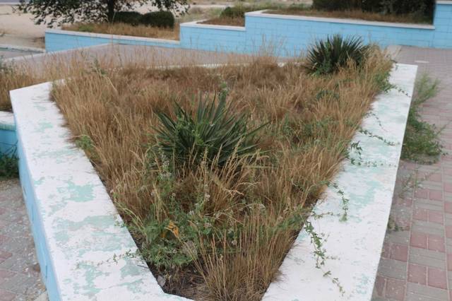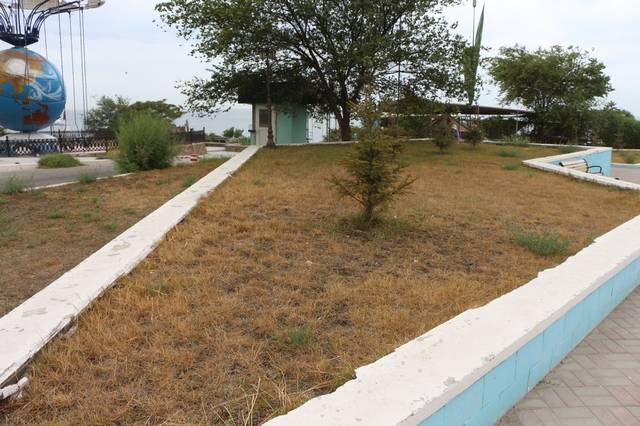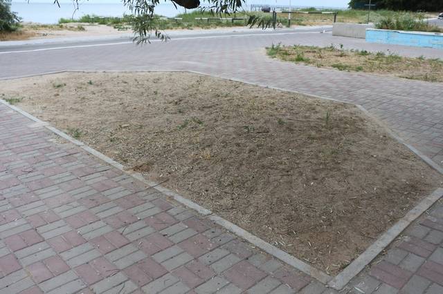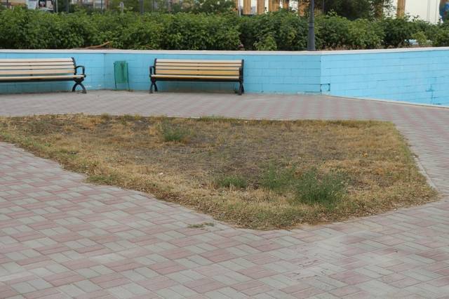 Унылый вид. Печальное зрелище. Попытки полить высохшую траву только угнетают и вызывают недоумение. Хочется задать вопрос: Вы, господа чиновники, точно знаете, что трава должна быть зеленой? Или вы там все дальтоники?