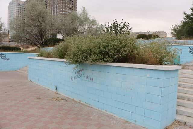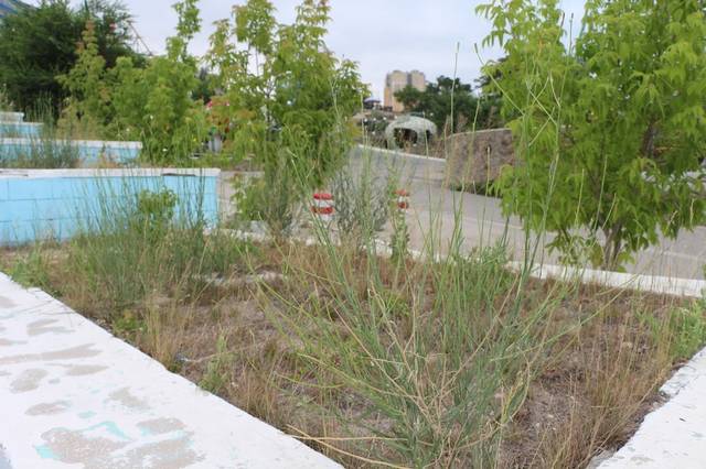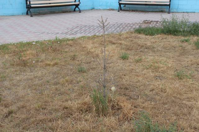 В прошлом году акимат обещал по всему городу установить капельное орошение. Видно забыли про обещание.