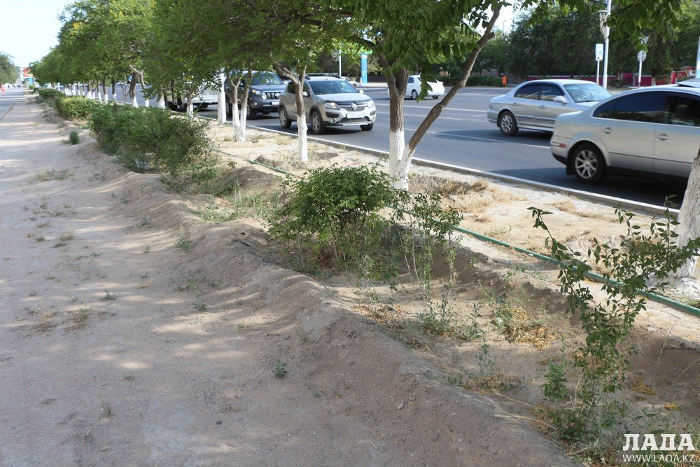Полив вдоль проспекта Нурсултана Назарбаева не производился, также как и по периметру микрорайона.