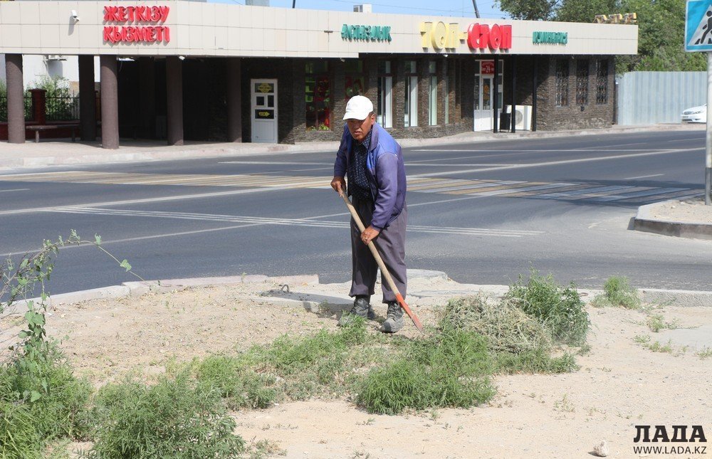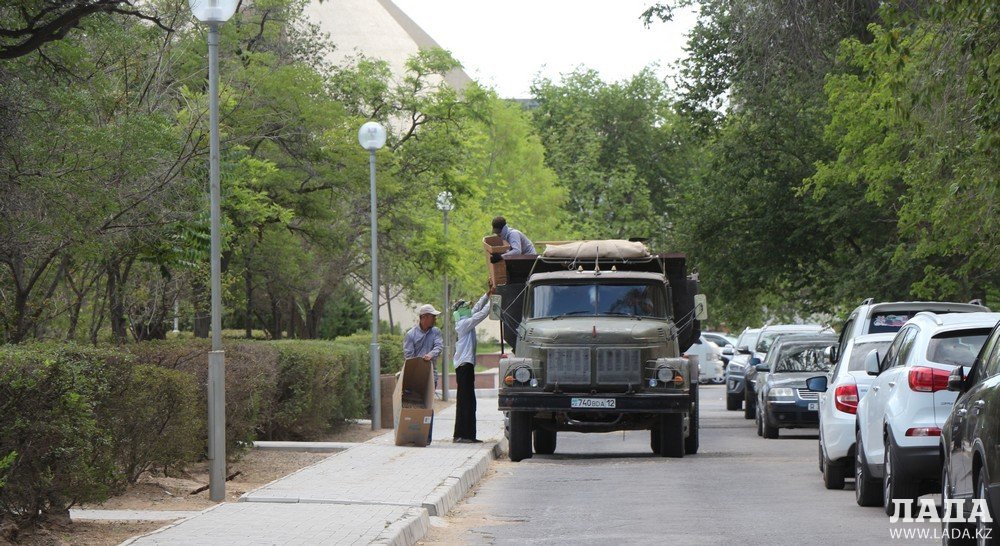 В конце обхода увидели работников ТОО «РЭП», которые занимаются поливом и вывозом сухостоя на аллее Победы.