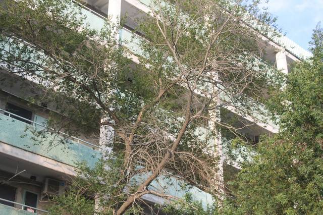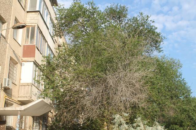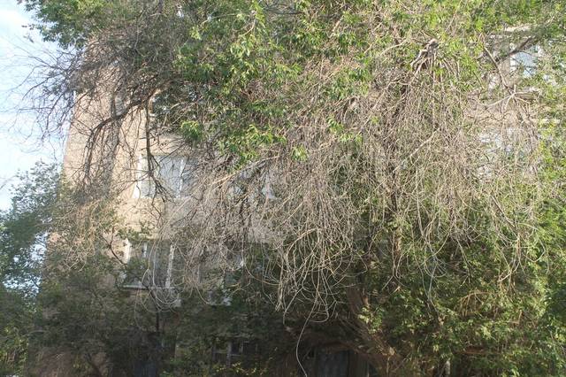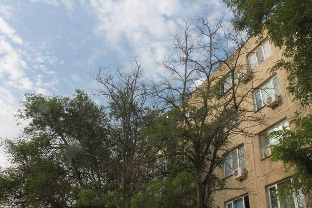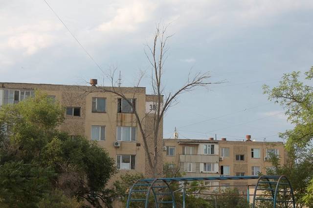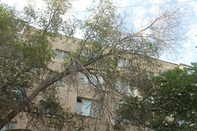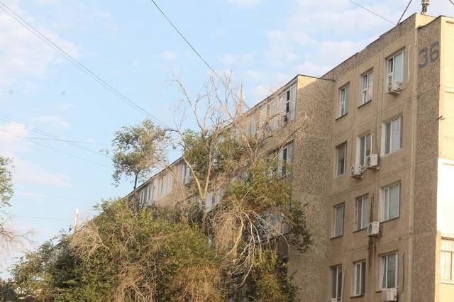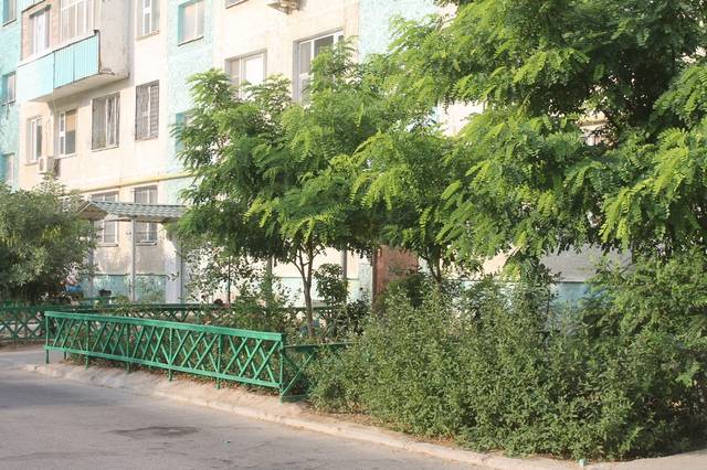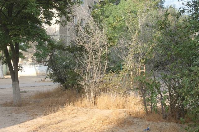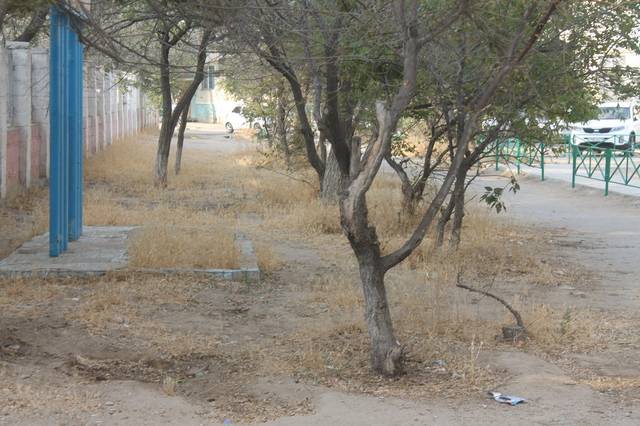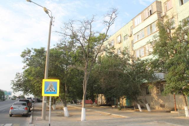 В микрорайоне много неспиленного сухостоя. Мы наблюдали его у домов №2, 5, 12, 15, 17, 19, 20, 21, 24, 28, 29, 30, 34, 35, 36, 37, 38, 41, 42, на территории средней школы №4 и колледжа Каспийского государственного университета технологий и инжиниринга имени Есенова.