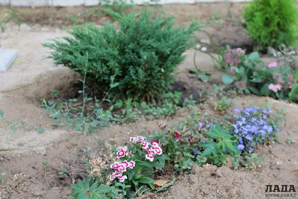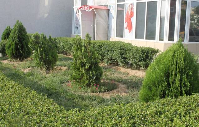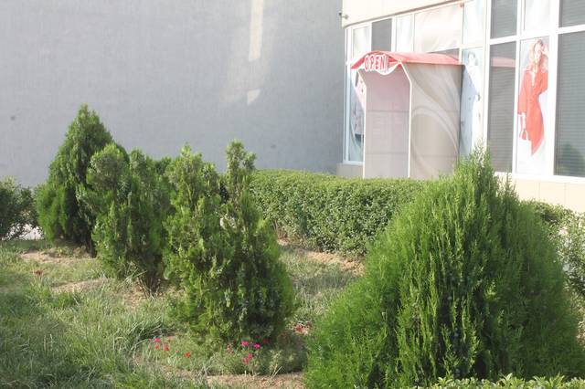 Приятно удивили ухоженные и политые зеленые насаждения у магазинов и кафе в 11 микрорайоне.