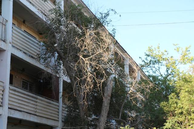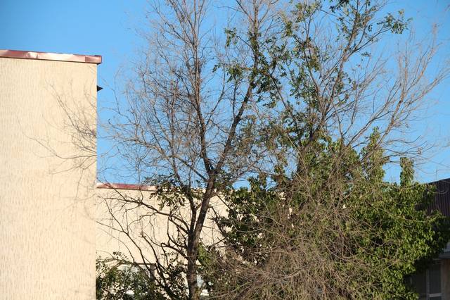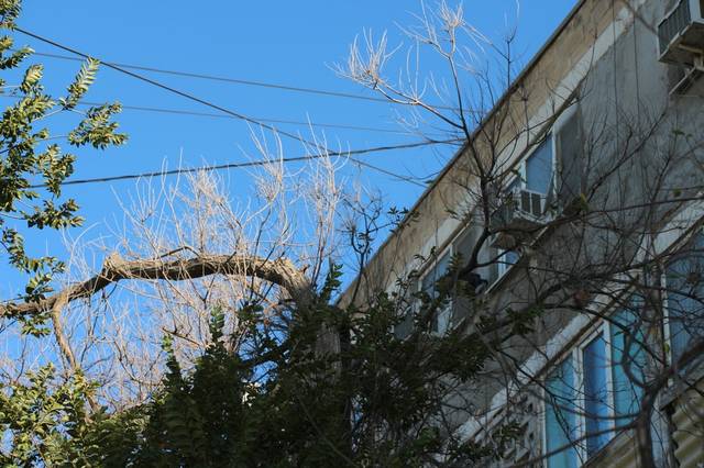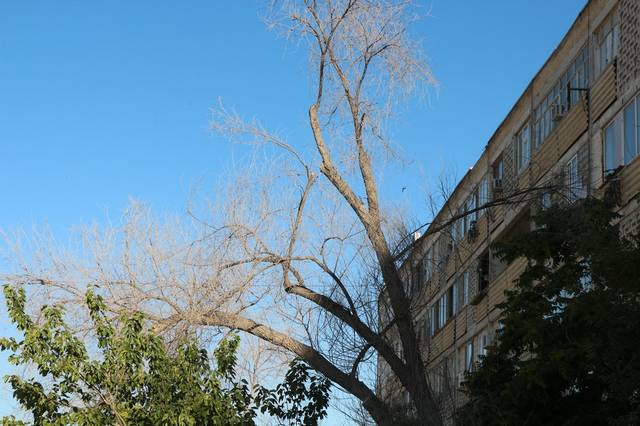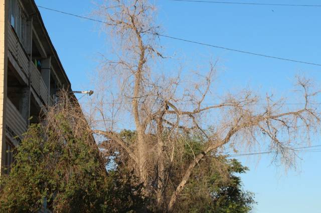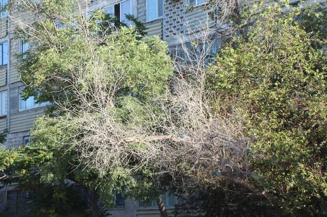 В микрорайоне много неспиленного сухостоя. Его мы наблюдали у домов №3, 4, 5, 6, 8, 11, 12, 13, 15, 16, 17, 19, 20, 21, 22, 23, 24, 25, 26, 30, 31, 32, 33, 35, 36, 37 и 40.