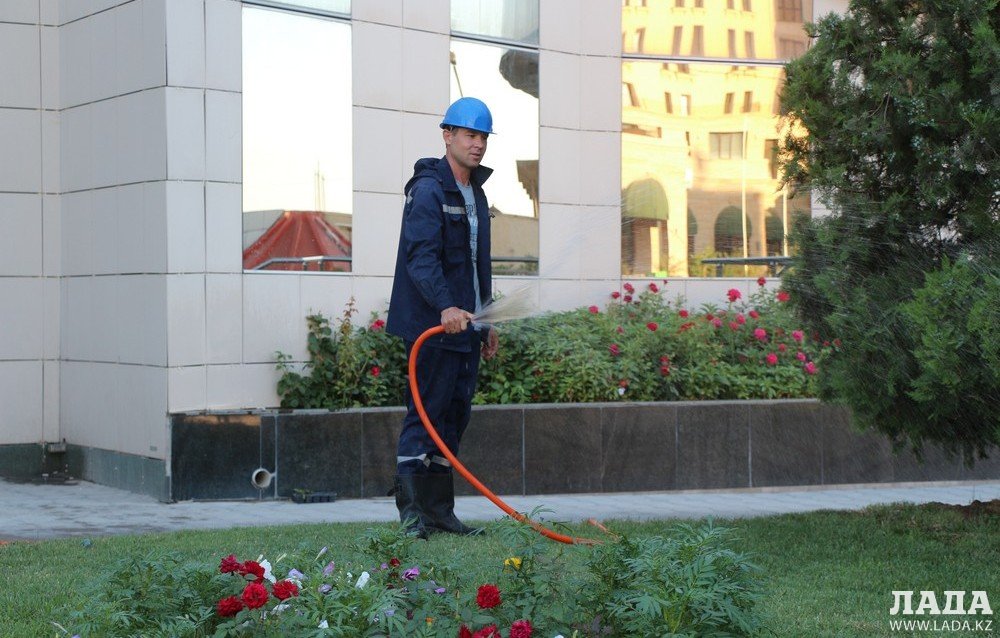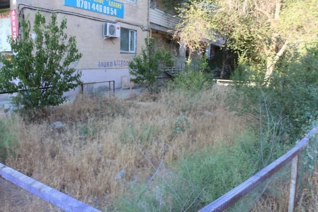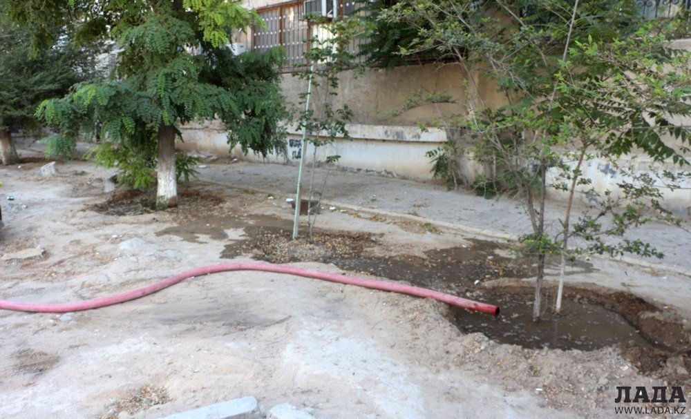 Работники ТОО «РЭП» умудрились полить сухостой за домом №9 и на территории молодежного центра.