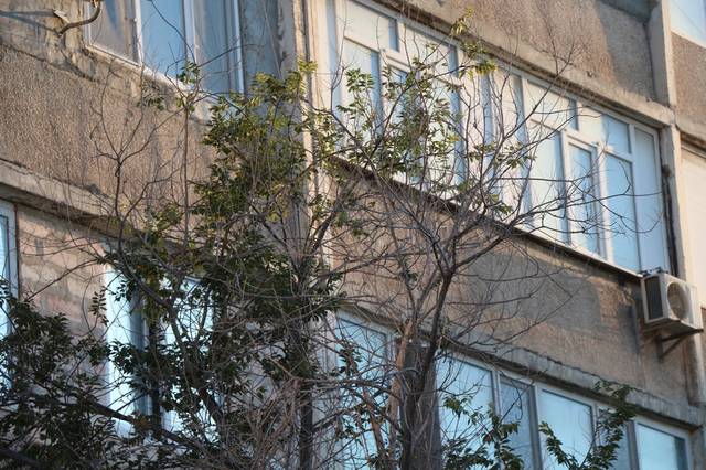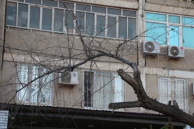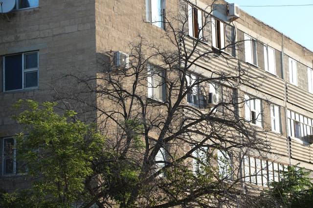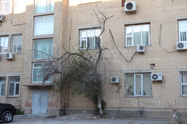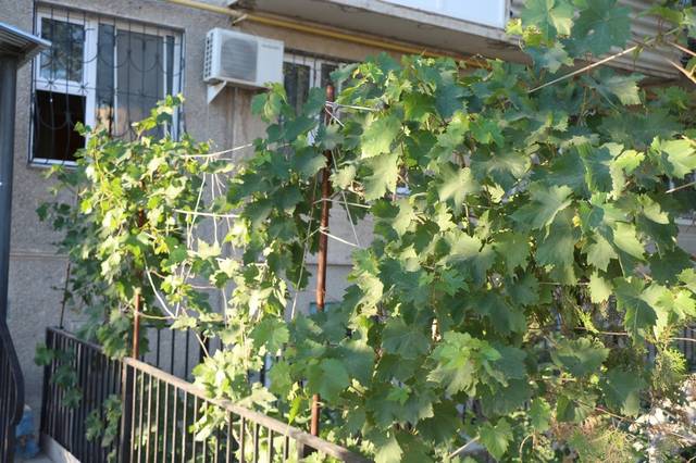Житель дома №17 использует конденсат из кондиционера для полива деревьев.
