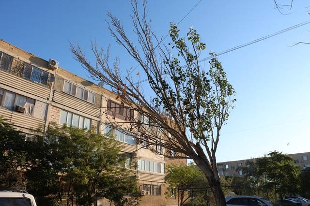 решили провести обход 5 микрорайона. Мы не нашли ни одного политого зеленого насаждения работниками ТОО «РЭП» в микрорайоне. Несколько деревьев были политы самими жителями.