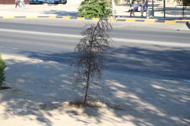 Вдоль дороги между 2 и 6 микрорайонами политы лишь три дерева.