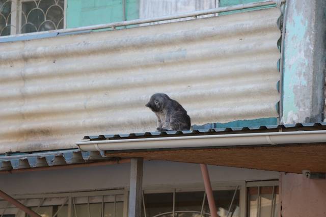 Вот так из ведра поливает свой палисадник житель дома №3.