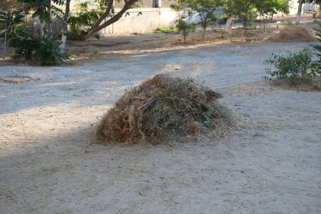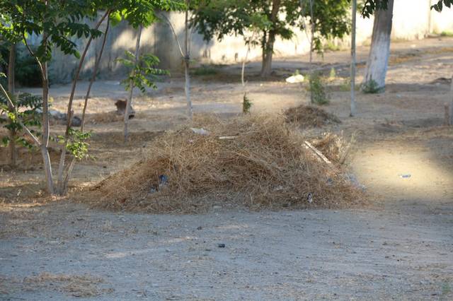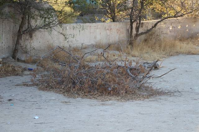 Сухостой и сухая трава скоплены на территории средней школы №6.
