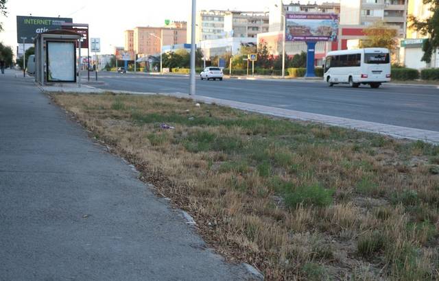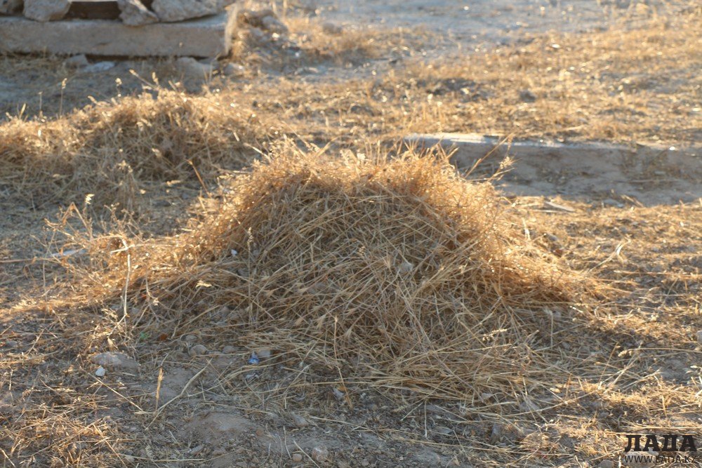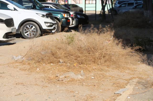 Вдоль проспекта Нурсултана Назарбаева заметна сухая сорная трава.