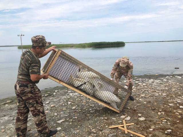 Больше десяти часов понадобилось инспекторам природного заказника, расположенного в Бейнеуском районе, чтобы перевезти на автомобиле лебедей из села Боранкул на озеро Караколь. Птиц выпустили в водоем.