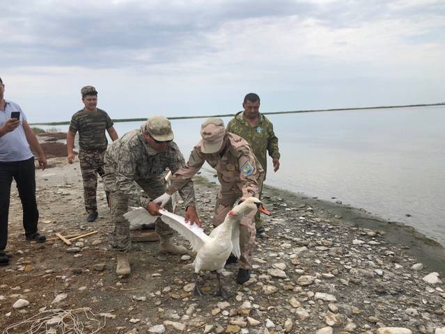 - Село Боранкул расположено в Бейнеуском районе по пути миграции лебедей. Видимо, от дождя в этом районе появилась большая лужа и они нашли там временное пристанище. Но, так как корма там не было, ослабли и улететь вместе с остальной стаей не смогли. Хочется поблагодарить фермера Кельдыбая Ибраева, который вовремя заметил птиц и сообщил о них, а также инспекторов заказника, которые вовремя привезли их в Актау, и у нас появилась возможность их выпустить на волю, - рассказал Габбас Досатов, заместитель руководителя областной территориальной инспекции лесного хозяйства и животного мира по Мангистауской области.