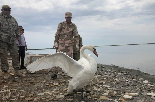 - Здесь их место обитания, здесь достаточно корма, чтобы они могли себя прекрасно чувствовать. На озере в данный момент обитает около 200 лебедей. Здесь есть также охрана и специальные инспекторы, которые будут следить за птицами, - сказал Габбас Досатов.